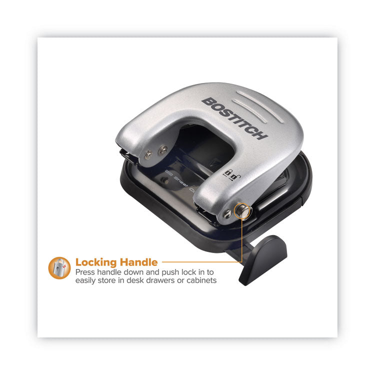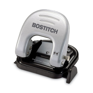 With this Bostitch two-hole punch PaperPro technology, easily two-hole punch sheets, jam-free. Designed with sleek, comfortable curves and a durable all-metal design for long-lasting performance. To ensure consistent hole placement, the punch has an integrated paper guide and ruler. For maintaining a clean work environment, the base holds the chip waste and can be emptied through the flip-open door. Ideal for the home, office or school, this hole puncher is the perfect tool for any setting.