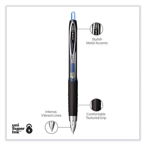 Stock your office, home or classroom with 207 Retractable Gel Pens from uni-ball featuring a 0.38 mm ultra micro point with a stainless steel tip that resists bending and breaking. Even-flowing, pigment-based gel ink delivers a smooth writing experience for intense, vibrant lines, ensuring that every mark is brilliantly communicated. Use these retractable gel pens for everyday writing tasks, check signing and all of your important signatures, trusting its quick-drying uni Super Ink. Innovative uni Super Ink technology effectively entraps the gel ink into the paper, producing fraud, fade and water-resistant documents that resist check washing or bleaching. The 0.38 mm ultra micro point produces neat and precise strokes for intricate writing, making it easy to create super fine details in your drawings and diagrams. A textured grip offers greater comfort and control as you continue writing, while a translucent ink window indicates the level of gel ink remaining, so you don't run out unexpectedly. The sleek design of the 207 with modern metal accents gives the retractable gel pen a stylish touch.