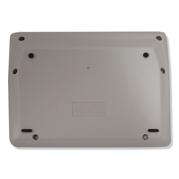 The Victor® 2140 12-digit calculator is perfect for desktop use either at home or in the office. Features an extra large LCD angled display. Other functions include: PC touch keys, selectable decimal switch, rounding slide switch, mark up key, square root key, grand total key, percent key, 4-key independent memory, change sign key, backspace key, automatic power down, and hybrid power (solar/battery backup).