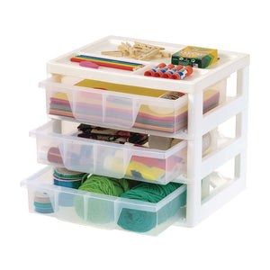 3-Drawer Desktop Storage, Plastic, 14.6 x 12.31 x 12.75, White/Clear