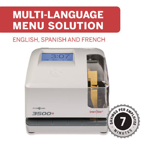 Do more with the Pyramid Time Systems model 3500ss multi-purpose time clock and document stamp. Perfect for the busy small business the 3500ss is a punch clock plus document stamp all-in-one. Record employee time and attendance by tracking job costs plus stamping documents. Track employees start times, break times, lunch times and finish times on a weekly timecard, or select from 14 pre-programmed message options to stamp invoices, attendance logs, legal paperwork or other time-sensitive documents. The side-loading timecard and document feed accommodates left- or right-hand orientation. An alignment guide helps line up punches. Prints the date and time (AM/PM or military time format) on weekly employee timecard. Internal battery backup safeguards data and settings up to seven days without power. Automatic reset for short months, leap year and daylight saving time.