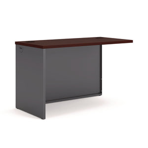 High-pressure laminate top is moisture-, scratch- and stain-resistant. Two work surface grommets for convenient cord management. Full-height modesty panel for privacy. Not freestanding. Use with desk shell to create an L-workstation or use two return shells with corner unit to create a corner workstation.