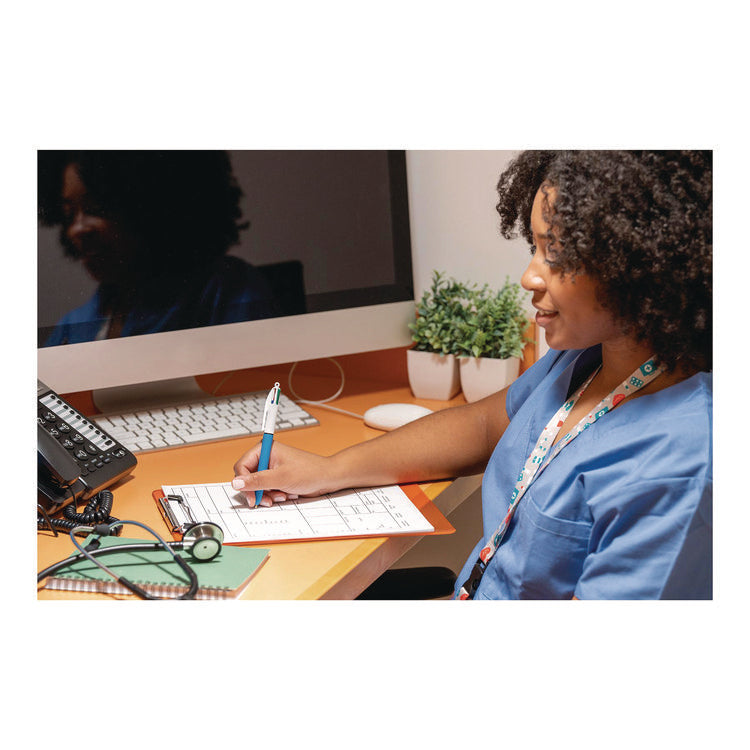 Express yourself in vivid color with the dependable and ultra-convenient BIC® 4-Color Ball Pen. This world-renowned multifunction pen lets you choose from four ink colors with a simple click, so there's no need to carry around multiple pens. It's a practical solution that's ideal for color-coding, organizing notes, editing others' work and more. Standard ballpoint ink is long-lasting, and the pen is refillable.