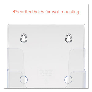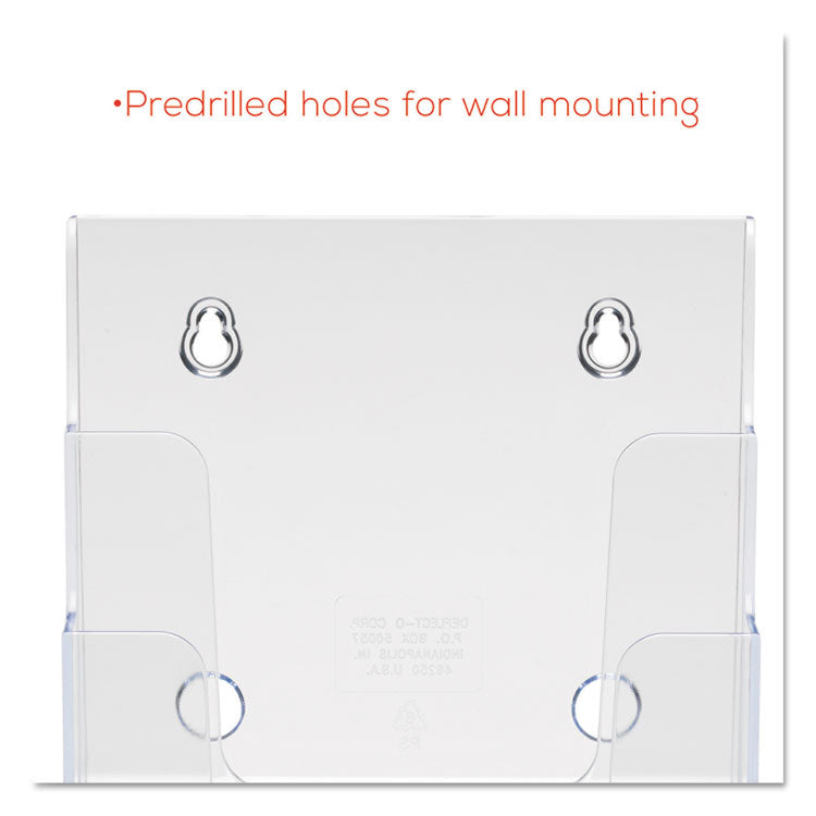 Clear, compact, multi-compartment literature holder with tiered design offers better visibility and space efficiency. Angled design keeps your materials at just the right angle for easy access. Ideal for use in financial institutions, government buildings, medical offices, lobbies, libraries and more. Use this durable, plastic literature holder as a stand-alone display on countertops, or mount on a wall to put the focus on your materials. Wall mounting hardware not included.