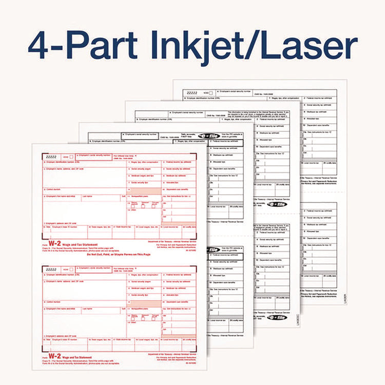 4-Part W-2 Tax Forms with Tax Forms Helper, Fiscal Year: 2024, Four-Part Carbonless, 8.5 x 5.5, 2 Forms/Sheet, 50 Forms Total