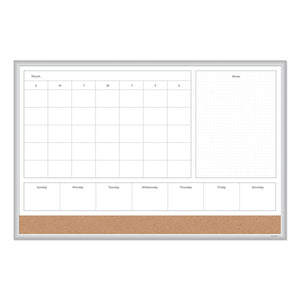 4N1 Magnetic Dry Erase Combo Board, Week/Month Planning, 36 x 24 (Actual Size: 35 x 23), Tan/WH Surface, Satin Aluminum Frame