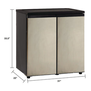 Keep your favorite snacks and beverages close by in this 5.5 cubic foot black and stainless-steel side-by-side refrigerator from Avanti. The perfect mini fridge for the office, dorm, man cave, she-shed, bar, bedroom, or anywhere you need a little extra refrigerator space. The door storage bins allow you to easily store beverages, while the two adjustable glass shelves and vegetable crisper with a glass cover allow you to arrange salads, fruits, snacks, and other food for easy access throughout the day. The freezer section features two adjustable shelves so you can save money and store frozen foods in bulk. This compact fridge features partial automatic defrost, so your food and beverages stay fresh and cold. Select the right settings with the full range temperature control.
