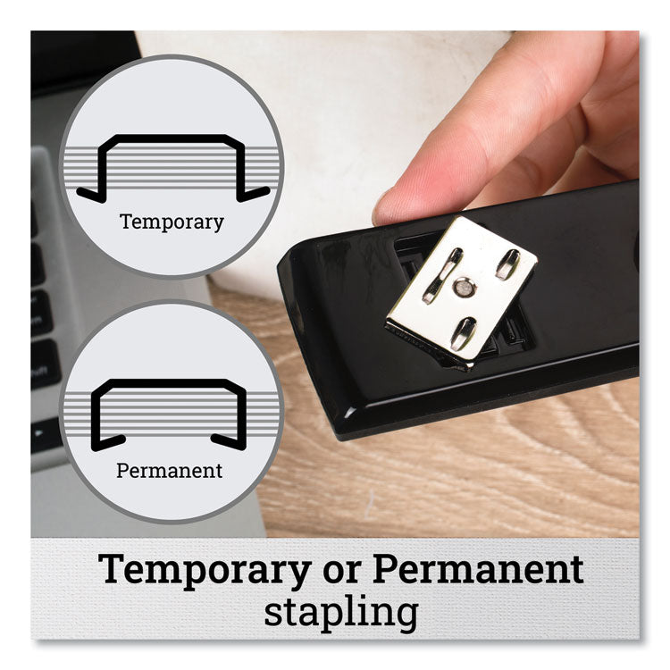 - Classically designed stapler with performance driven stapling mechanism and inner rail always delivers jam-resistant, accurate stapling.