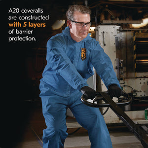 View Details- KleenGuard A20 are designed to protect against dirt, grime and dust and are made with breathable SMS fabric