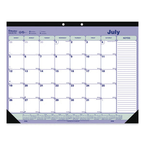 Keep track of important exam and project due dates with the Blueline® Academic 13-Month Desk Pad Calendar. It lays everything out within a one month per page, one block per day format. In addition to its generously sized daily blocks, a ruled "Notes" column on the right-hand margin allows you to capture important details that might not fit neatly into any one day. A full-year reference calendar along the bottom of each page can also help you keep track of when important future dates might fall. A reinforced chipboard backer provides a sturdy writing surface, and each sheet is perforated to separate cleanly when it's time to move onto the next month. Securely bound at top.