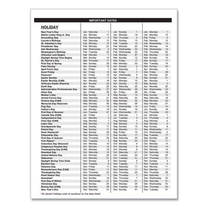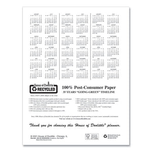 Monthly page spread enables you to see your entire month's schedule. Each page features a note section and a two-month reference calendar view for long-term planning. Includes a double-sided storage pocket. Strong wirebound core with an embossed black simulated-leather cover withstands constant use throughout the year. Made entirely of recycled materials.