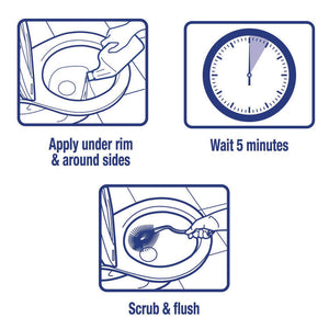 Quickly removes rust stains, scale and residue from toilet bowls and urinals with professional results. Its clinging gel works harder on vertical surfaces, leaving a clean shine and a pleasant, fresh fragrance. It is also safe for septic tanks, drain lines, and water-treatment systems.