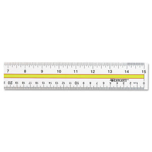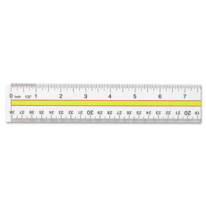 Simplify reading across computer sheets with the tinted guide. Clear plastic ruler features a see-through yellow center panel to highlight one line at a time. Two beveled edges ruled with standard scale on one side, metric on the other.