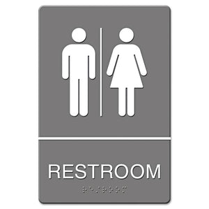 Ada Sign, Restroom Symbol Tactile Graphic, Molded Plastic, 6 X 9, Gray