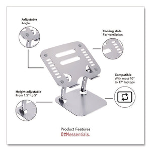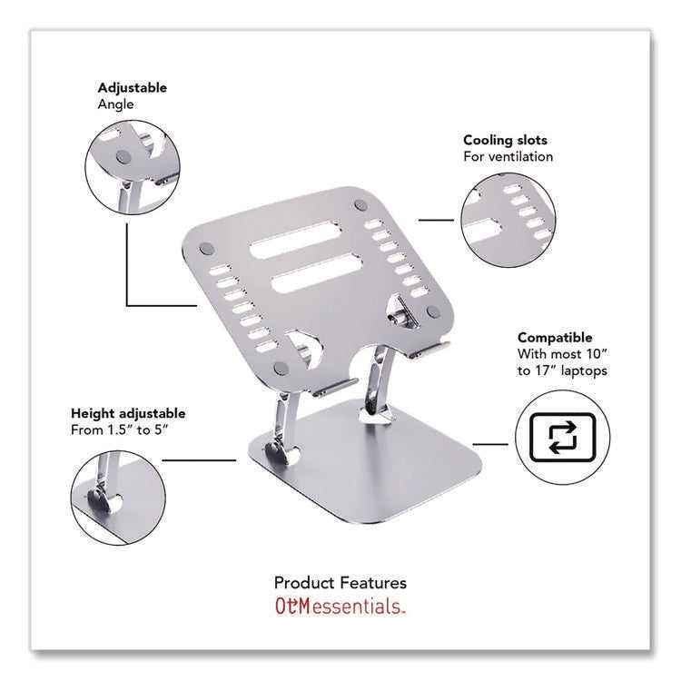 The OTM Essentials adjustable riser laptop stand helps raise your laptop to an ideal working position. Aluminum for a sleek look that is both portable and lightweight.