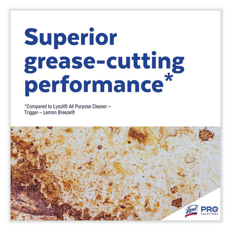 Optimize your cleaning practices with the ergonomic trigger spray bottle and the advanced, all-purpose cleaner that offers excellent grease cutting performance. The advanced deep clean all-purpose cleaner destroys grease and grime with ease. Designed for commercial use, Lysol® Professional Advanced Deep Clean All-Purpose Cleaner can help you deep clean, disinfect, and degrease high-touch surfaces all in one product. Drive operational efficiency with the convenient trigger spray bottle and a solution that offers efficient cleaning and disinfecting at the same time. Cut through stubborn stains and spills using this advanced multi-purpose cleaner. Lysol® kills 99.9% of germs and viruses (including the virus that causes COVID-19) when used as directed on hard, non-porous surfaces.