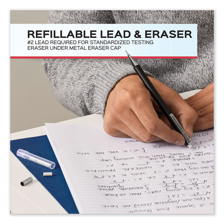 Get the writing performance you expect from Paper Mate in a mechanical pencil that commands attention. Paper Mate Advanced Mechanical Pencils feature a premium metal barrel and durable metal clip that elevate your writing. These Paper Mate mechanical pencils look and feel as good as they write. A retractable metal tip makes it easy to store in pockets, backpacks, and purses, while the #2 pencil lead is the choice for standardized tests.