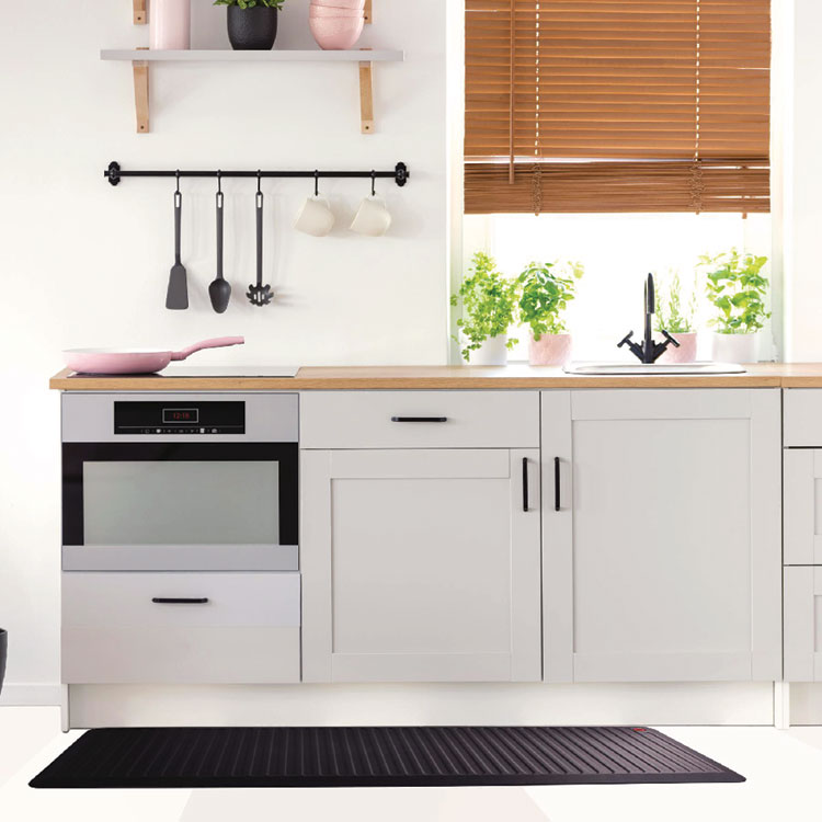 - Advanced ergonomic standing surface includes multiple ribbed design features which encourage regular foot movement and changes in standing position that stimulate blood flow for reduced fatigue.