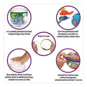 Crayola Air Dry Clay allows your little ones to create fun and imaginative shapes with ease. This soft modeling material can either be reused or air dried to preserve your creation. No baking is ever required. Smoother, finer, and less sticky than traditional clay, this Crayola modeling clay is perfect for group activities. You can even soften the clay with water if needed, allowing kids to enjoy hours of fun making and re-making favorite creations. Once your child is finished creating, the air dried clay is great for painting.