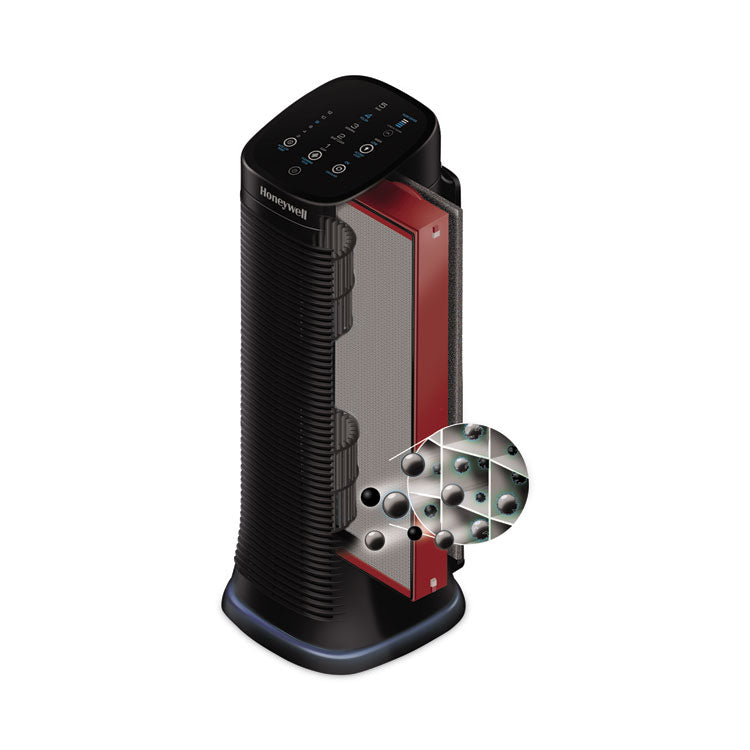 The Honeywell Air Genius 5 Air Purifier features 5 levels of cleaning power and a patented ifD® advanced filtration system that provides exceptional air cleaning performance for large rooms up to 250 square feet. Filter helps capture microscopic airborne particles 0.3 microns and larger such as dust, pollen, pet dander, dust mite debris and smoke. Permanent washable ifD® filter and foam pre-filter for easy maintenance.