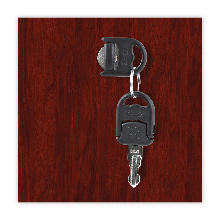 Sturdy, four-sided drawer construction file cabinet with separate front panel. Durable construction that's designed to resist water, scratches, and dents. Finish has a charcoal accent line under worksurface. Can be used as a freestanding file or in combination with credenza shell, which is sold separately. The top removes for installing under worksurface. Two, fold-away safety keys (included) for a slimmer profile.