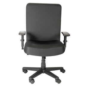 A fusion of remarkable style and exceptional ergonomics for larger individuals up to 500 lbs. Heavy-duty construction provides strength and durability. High-capacity gas lift for hassle-free height adjustment plus heavy-duty swivel seat control with optimized back angle for stable support. Lavishly-sized sculptured seat and back offer maximum comfort while contoured stitched upholstery and custom-designed back strap deliver superior aesthetics. Five-star high-strength base with casters.