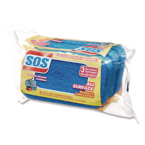 S.O.S® All Surface Scrubber Sponge is dual-sided for cleaning both heavily soiled and delicate surfaces. Its durable and long-lasting for everyday use with the scrubbing power on one side to cut through tough messes and a soft absorbent cellulose sponge on the other to clean delicate surfaces including non-stick cookware, marble, ceramic and tile. The all-surface sponge features an easy-to-hold shape that allows you to clean hard-to-reach crevices faster and easier. This sponge is also dishwasher safe so you can toss it in the top rack to conveniently sanitize. Ideal for use in restaurants, cafeterias, hotels, break rooms and other commercial facilities. Cleaning is quick and easy with S.O.S®.