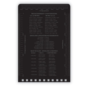 - Conversion charts, map scales and a standard-scale ruler printed on the back cover.