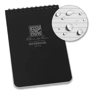 All-Weather Wire-O Notepad, Universal: Narrow Rule and Quadrille Rule, Black Cover, 50 White 4 x 6 Sheets