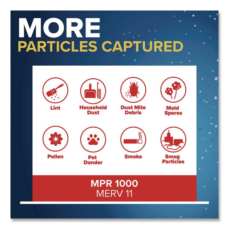 View Details- This no-nonsense filter helps capture varying sizes of particles, from the large (lint, pollen, dust and pet dander) to the microscopic (smoke and smog).