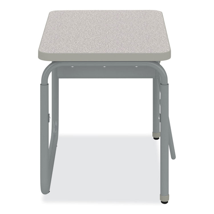 Encourage healthy movement and provide convenient storage with the AlphaBetter 2.0 height-adjustable student desk that features a high-pressure laminate top. This desk comfortably accommodates students of all sizes as they work or sketch ideas. A pendulum footrest allows students to redirect excess energy and continue to move, even as they sit, providing ergonomic support, increasing comfort, and promoting cardiovascular health. Great for boosting productivity and focus, this student desk has the added benefit of optional casters for better mobility throughout the classroom. Height adjusts accommodating students in 5th grade and up as well as adults at seated and standing heights.