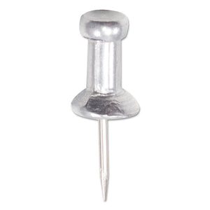 Aluminum Head Push Pins, Aluminum, Silver, 0.38", 100/Box