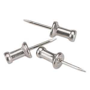 Aluminum Head Push Pins, Aluminum, Silver, 0.5", 100/Box