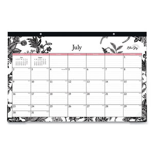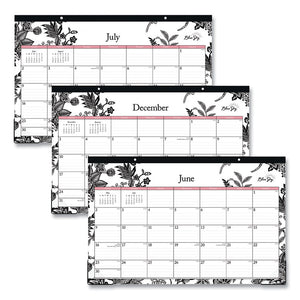 Analeis Academic Year Desk Pad Calendar, Floral Artwork, 17 x 11, White/Black/Coral Sheets, 12-Month (July-June): 2025-2026