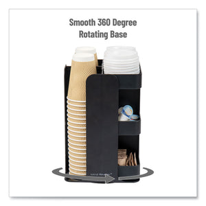 Anchor Collection 8-Compartment Coffee Cup, Lid, and Condiment Carousel Countertop Organizer, 8 x 8 x 12, Black