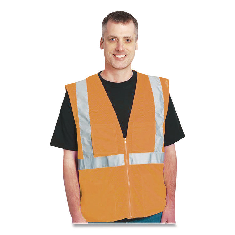 ANSI Class 2 Two-Pocket Zipper Mesh Safety Vest, Polyester Mesh, 2X-Large, Orange