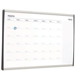 ARC Frame Cubicle Board, Monthly Planning/Scheduling Calendar, 30" x 18", White Magnetic Surface, Satin Aluminum Frame