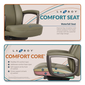 Stay productive yet relaxed with the La-Z-Boy Arcadian Bonded Leather Executive Chair. The Arcadian is beautifully designed with smooth bonded leather upholstery and supportive multilayered ComfortCore seat construction to target body discomfort and promote circulation for hours of comfort.