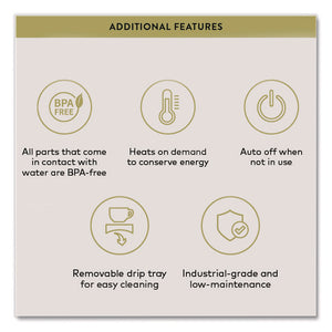 - Quick, easy-to-use technology with single-serve drinks ready in 40-60 seconds.