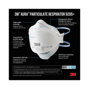 Aura Particulate Respirator 9205+, N95, One Size Fits All, 20/Pack