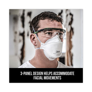 This N95 disposable particulate respirator is designed to help provide respiratory protection of at least 95% filtration efficiency against certain non-oil based particles. The lightweight, three-panel designed respirator helps provide comfortable and convenient respiratory protection. 3M's proprietary filter media, 3M™ Advanced Electret Media, filters dust and other airborne particles, while allowing for easy breathing. The soft inner material provides added comfort and the adjustable nose clip help provide a custom seal.