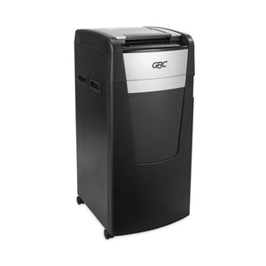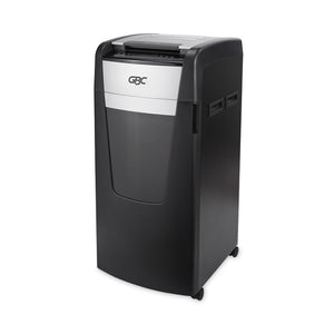 Spend less time shredding and more time on other tasks. GBC AutoFeed+ Shredders take the manual work out of shredding to make your day easier. Simply stack, shut and walk away! For your biggest shredding jobs, choose the fully-automatic GBC AutoFeed+ Shredder. Stack up to 750 sheets in the feeder for automatic shredding or manually feed up to 15 sheets at once. Micro-cut (P-5) shred style safely shreds confidential or sensitive documents. Runs ultra-quietly to help minimize noisy disruptions in large offices. Powerful induction motor with 240-minute continuous run time and oversized 37 gal bin let you shred longer without stopping. A lockable feeding tray provides additional security to your shredded documents. Auto shreds documents, paper clips and staples, while credit cards must be manually inserted.