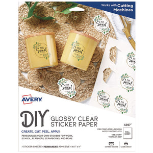 Design your own custom labels with this sticker project paper. The permanent adhesive stays securely attached to metal, glass, and plastic surfaces to ensure items are clearly marked, while the glossy coating provides a sleek, professional look. This Avery permanent adhesive sticker project paper provides plenty of material for a variety of tasks.