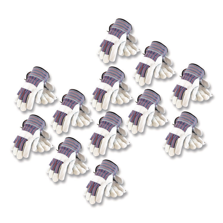 B/C Grade Shoulder Split Cowhide Leather Palm Gloves, Gunn Cut, Wing Thumb, Large, Blue/Gray, 12 Pairs