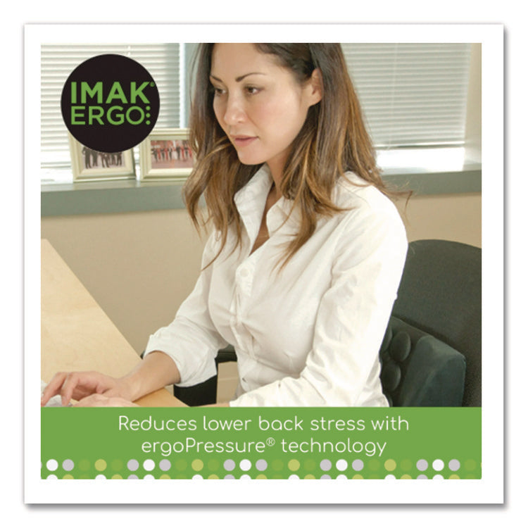 Enhance ergonomics and sit up straighter with this back cushion. Compatible with most office chairs and car seats, this cushion helps reduce back pain by providing comfortable lumbar support and encouraging better posture. Vacuum-formed air pockets help keep you cool by improving airflow and gently massaging your back. Portable design for use almost anywhere.