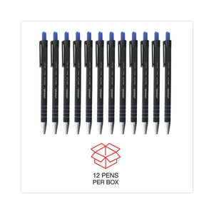 Universal™ Retractable Ballpoint Pen features a rubberized barrel with ringed, no-slip grip that's easy to hold. The stable and rubberized barrel provides exceptional comfort and a secure grip for precision writing. The quick-drying, water-resistant ink won't smear or run, keeping your documents safe and legible. The retractable pen protects pockets and purses by keeping ink inside the pen when closed.