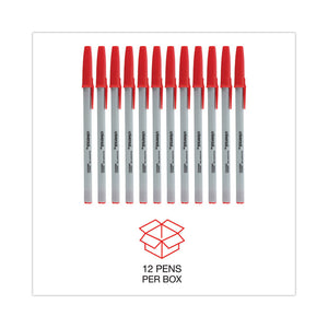 Ballpoint Pen, Stick, Medium 1 mm, Red Ink, Gray/Red Barrel, Dozen