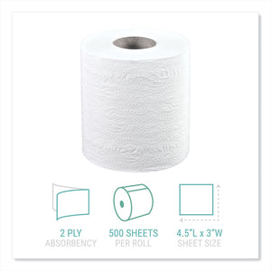 Bath Tissue, Septic Safe, Individually Wrapped Rolls, 2-Ply, White, 500 Sheets/Roll, 48 Rolls/Carton