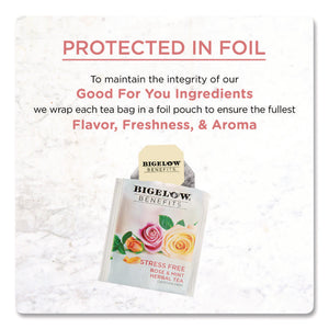 Benefits Rose and Mint Herbal Tea Bags, 0.6 oz Tea Bag, 18/Box
