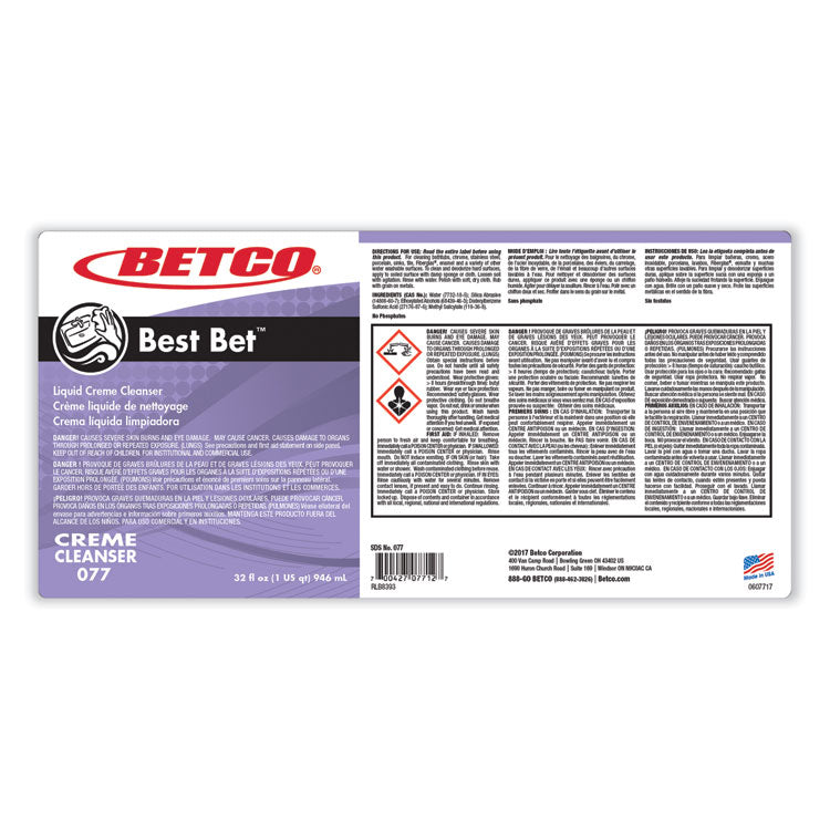 Best Bet Liquid Creme Cleanser, Mint, 32 Oz Bottle, 12/carton